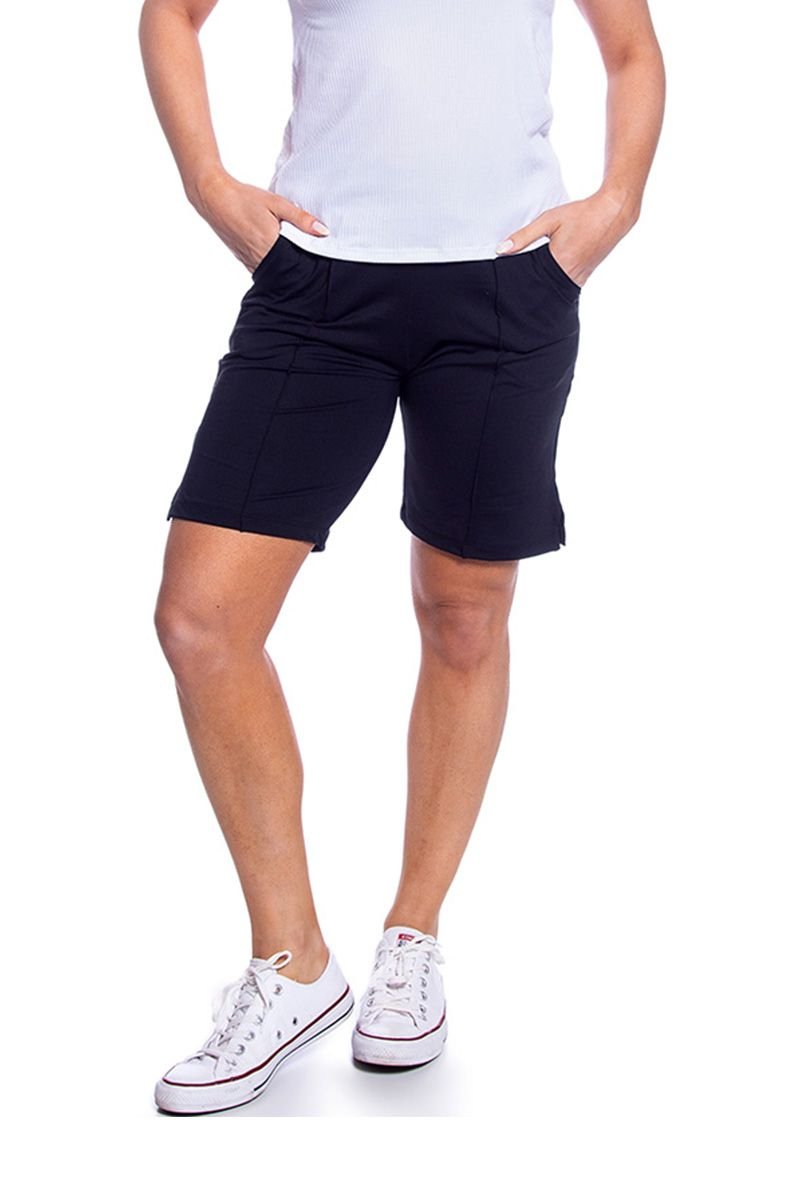 Seu comprimento médio é ideal para proporcionar segurança sem restringir os exercícios, garantindo confiança em agachamentos, corridas e treinos funcionais. Os bolsos laterais e traseiros funcionais permitem carregar pequenos objetos com praticidade, enquanto o detalhe na frente valoriza o design e confere um toque moderno à peça.