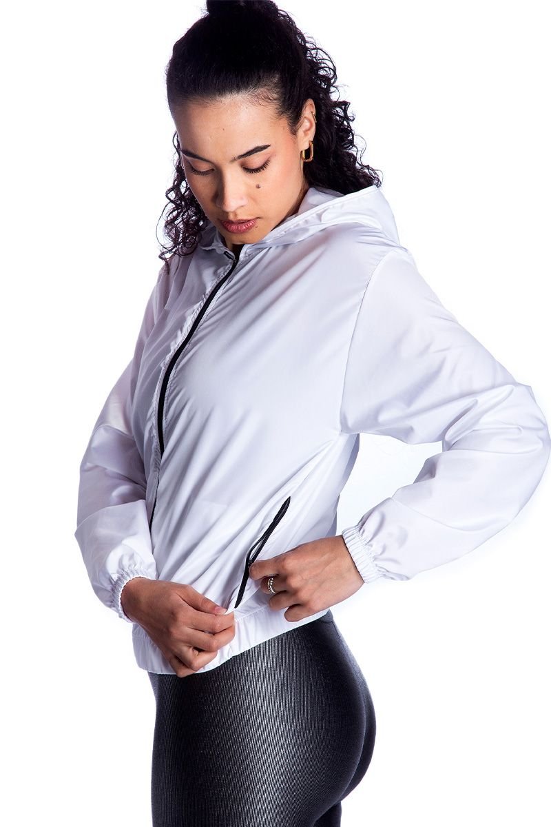 Jaqueta corta vento feminina com capuz, ideal para treinos ao ar livre e para o dia a dia. Confeccionada em material leve e resistente, conta com bolsos laterais com zíper, garantindo mais praticidade e segurança para carregar pequenos objetos. O acabamento em elástico nos punhos e na barra proporciona melhor ajuste ao corpo, enquanto o design moderno traz conforto e estilo em qualquer ocasião.