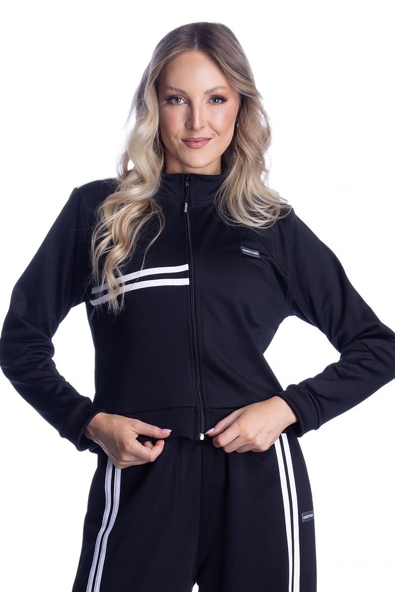 Com design moderno e minimalista, essa peça se destaca pelas faixas contrastantes que trazem personalidade e um toque fashion ao visual. O fechamento em zíper frontal garante praticidade, enquanto a modelagem confortável se ajusta ao corpo sem limitar os movimentos.